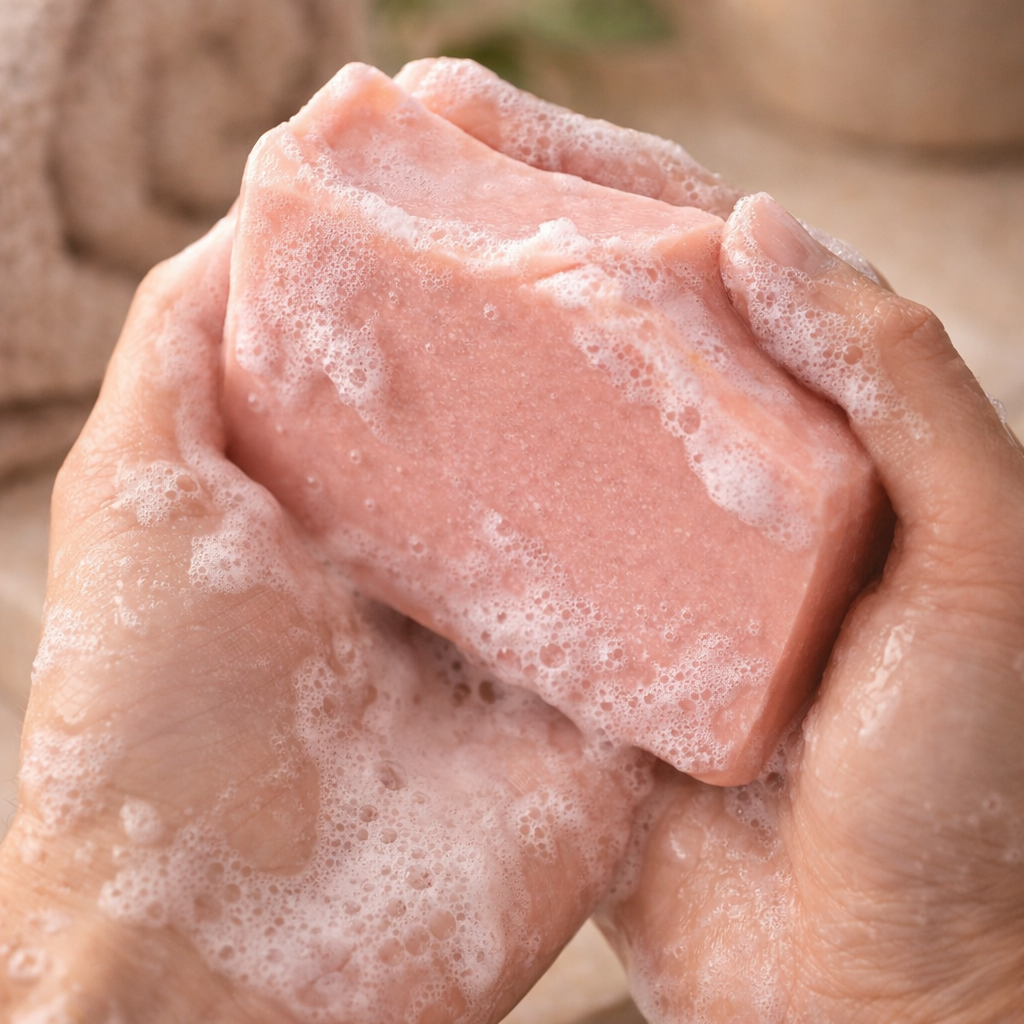Descubre una experiencia de cuidado única con nuestro Jabón de Feromonas Premium, elaborado de forma artesanal con una infusión de rosas, rosa mosqueta, lavanda y romero, que aporta propiedades calmantes, regeneradoras y revitalizantes a tu piel.