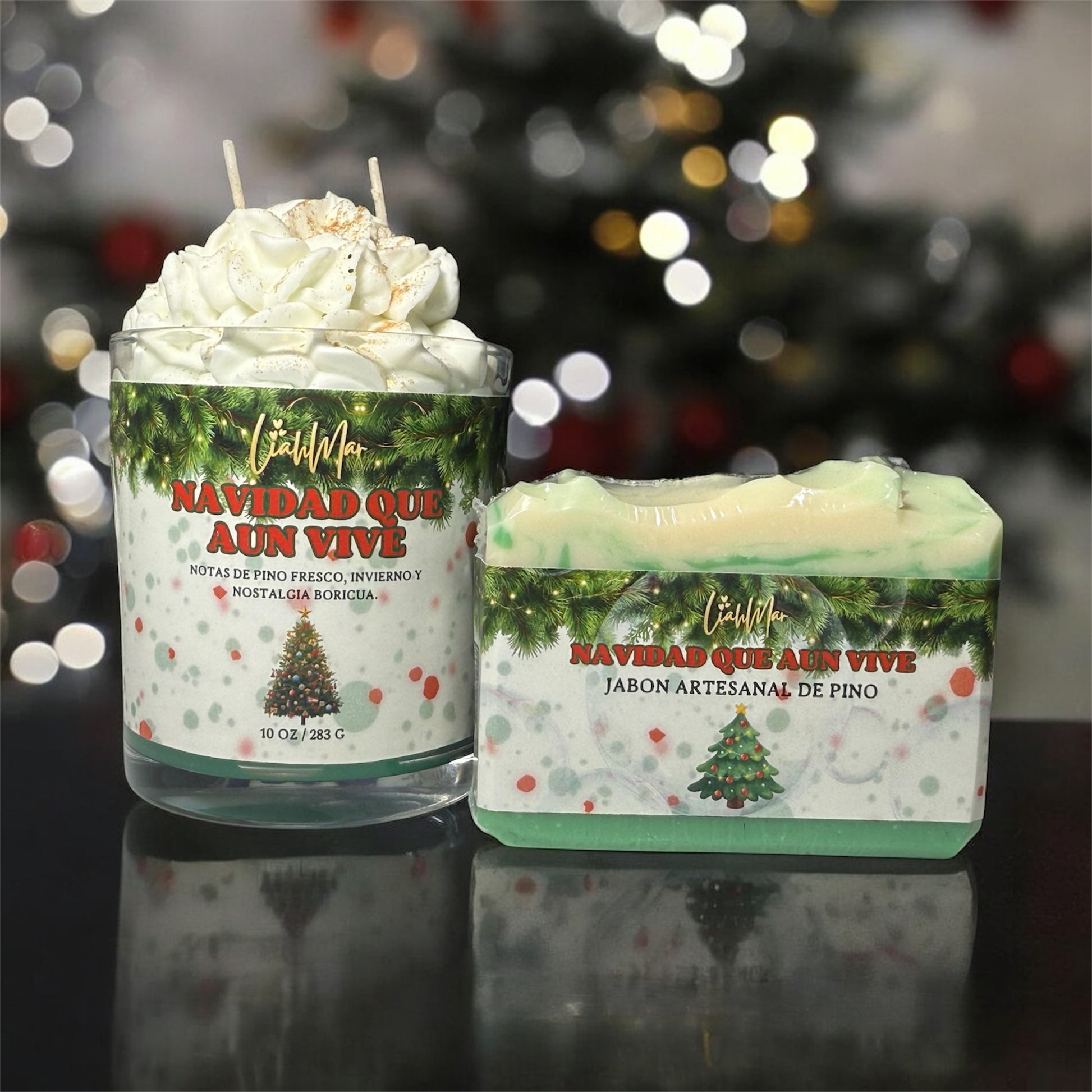 - Vela artesanal con notas de pino fresco, invierno y calidez navideña